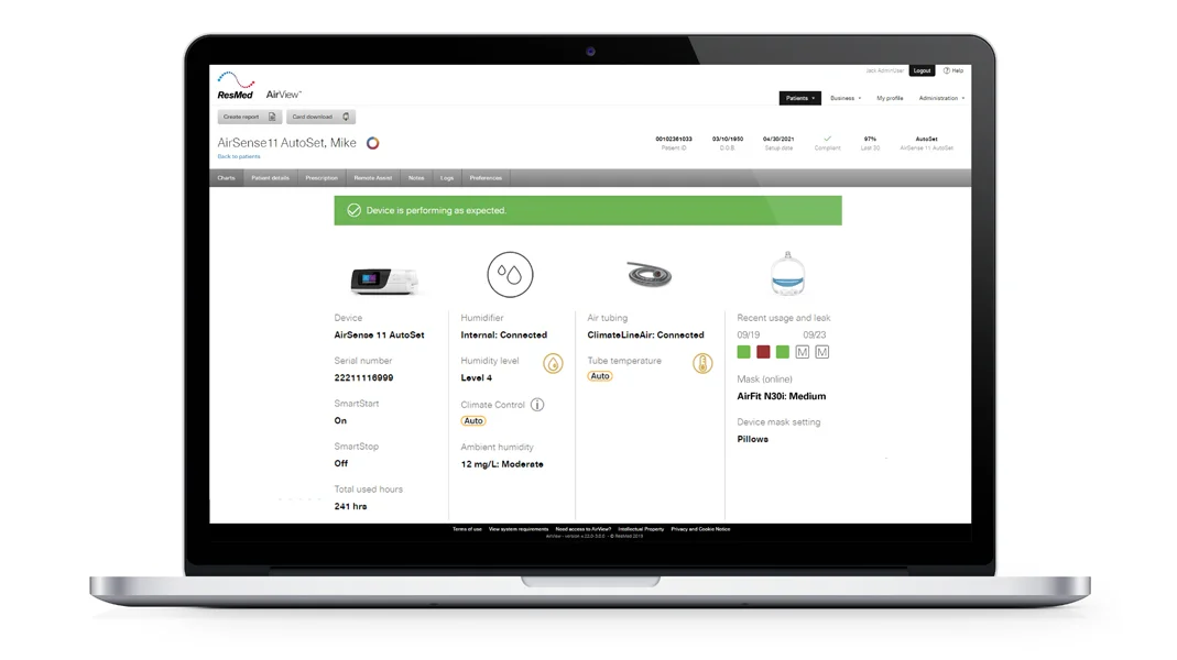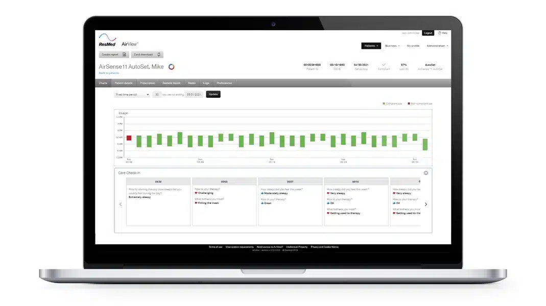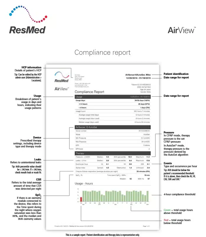 Recevez un rapport détaillé de conformité CPAP pour votre appareil ResMed AirSense 10 ou AirSense 11 acheté chez CPAP Outlet.