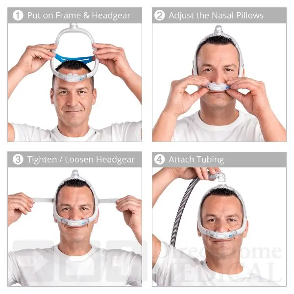 • Under-the-nose nasal pillows design reduces facial contact and pressure points