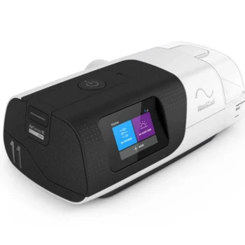 ResMed AirSense 11 AutoSet is a premium auto-adjusting pressure device with integrated heated humidifier, wireless connectivity, advanced event detection and patient support features.